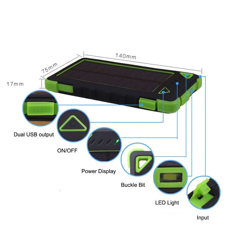 Introducing our remarkable and globally recognized product - the 8000mAh Dual USB Solar External Battery Charger! With our brand, you'll soar to new heights of visibility worldwide. These chargers are equipped with a robust 8000mAh battery and can be conveniently charged using the included USB cables. Just plug in your smartphones, flip the switch button, and witness the indicator light spring to life.